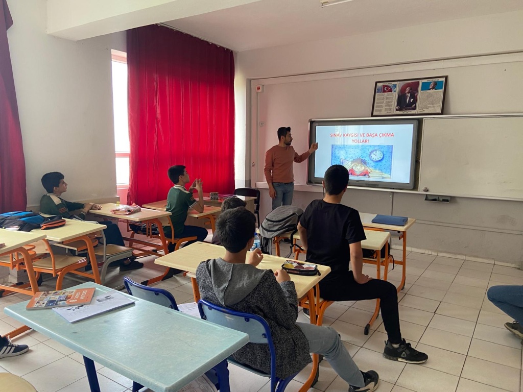 HEDEF LGS Projesi kapsamında 8. sınıf öğrencilerine sınav kaygısı ve başetme yolları ile ilgikli seminer okul rehberlik servisi tarafından verildi.
