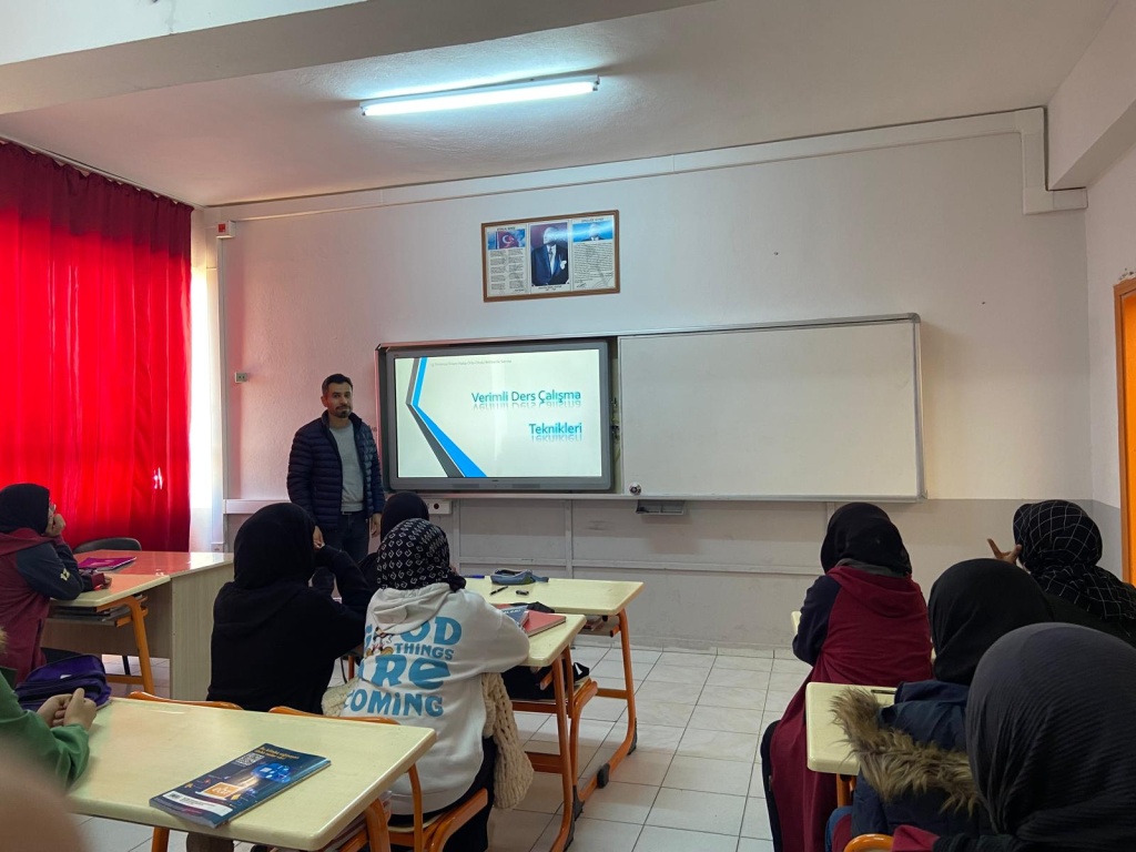 HEDEF LGS Projesi kapsamında 8. sınıflara Okul Rehber Öğretmeni Emrah YAREN tarafından 'Etkili ders çalışma yöntemleri' konulu seminer düzenlendi ve etkili ders çalışma yöntemleri el broşürü dağıtıldı.