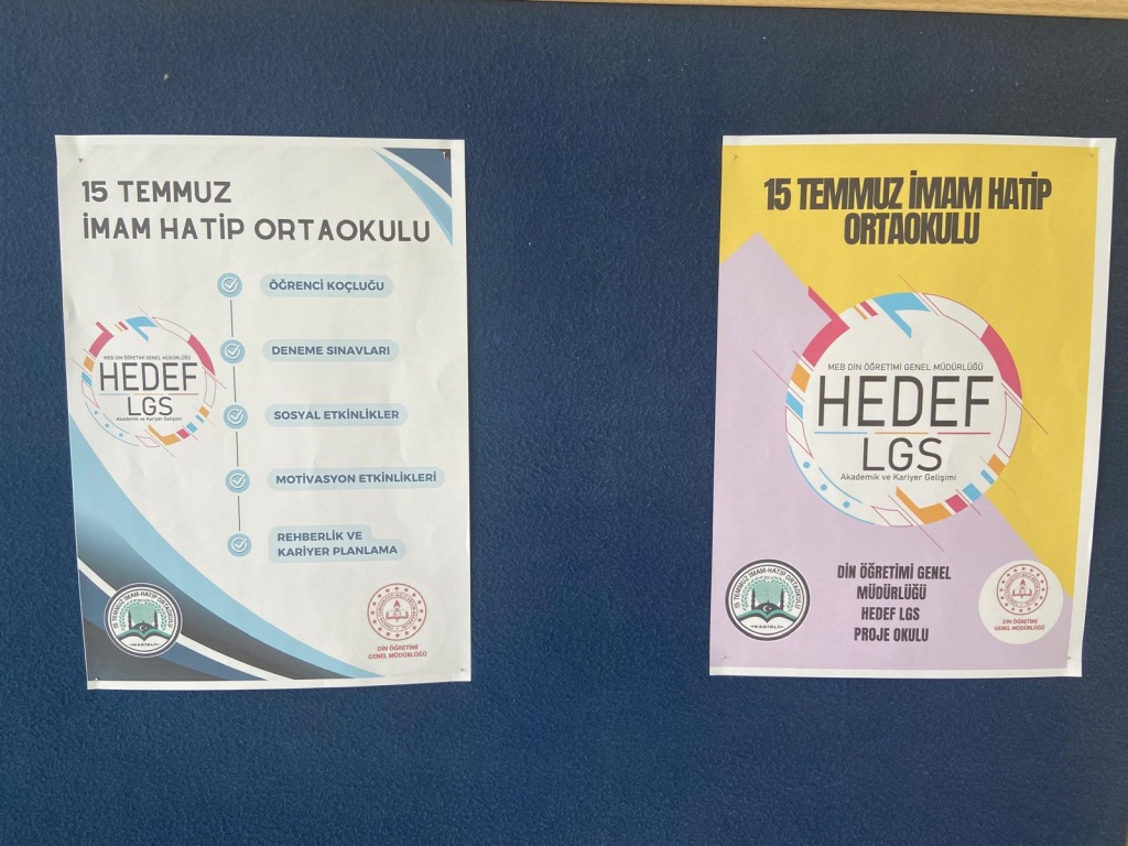 2024 - 2025 Eğitim Öğretim yılında da HEDEF LGS projesini okulumuzda uygulamaya devam ediyoruz. Bu kapsamda afişlerimizi hazırlayarak okul panolarında ve sosyal medyada projemizin tanıtımını yaptık.